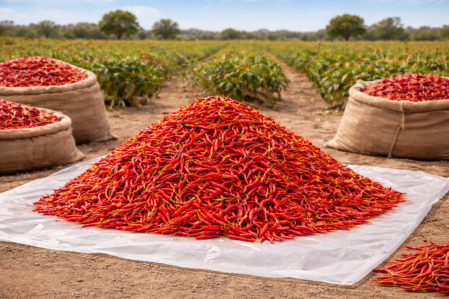 Farmers who cultivate red chilies, groundnuts, tamarind, and spices in India, particularly in South India